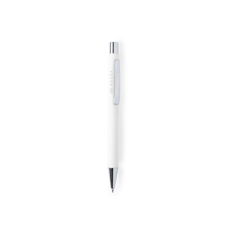 Kugelschreiber mit Push-Up-Mechanismus in elegantem zweifarbigem Design. Aluminiumgehäuse mit Gummiausrüstung, speziell für den Laserdruck entwickelt, dass das Logo in silberfarbenem Ton zeigt. Verchromte Spitze und Drücker, mit Metallclip. Erhältlich in einer breiten Palette von Farben, mit Jumbo-Patrone und blauer Tintenmine.