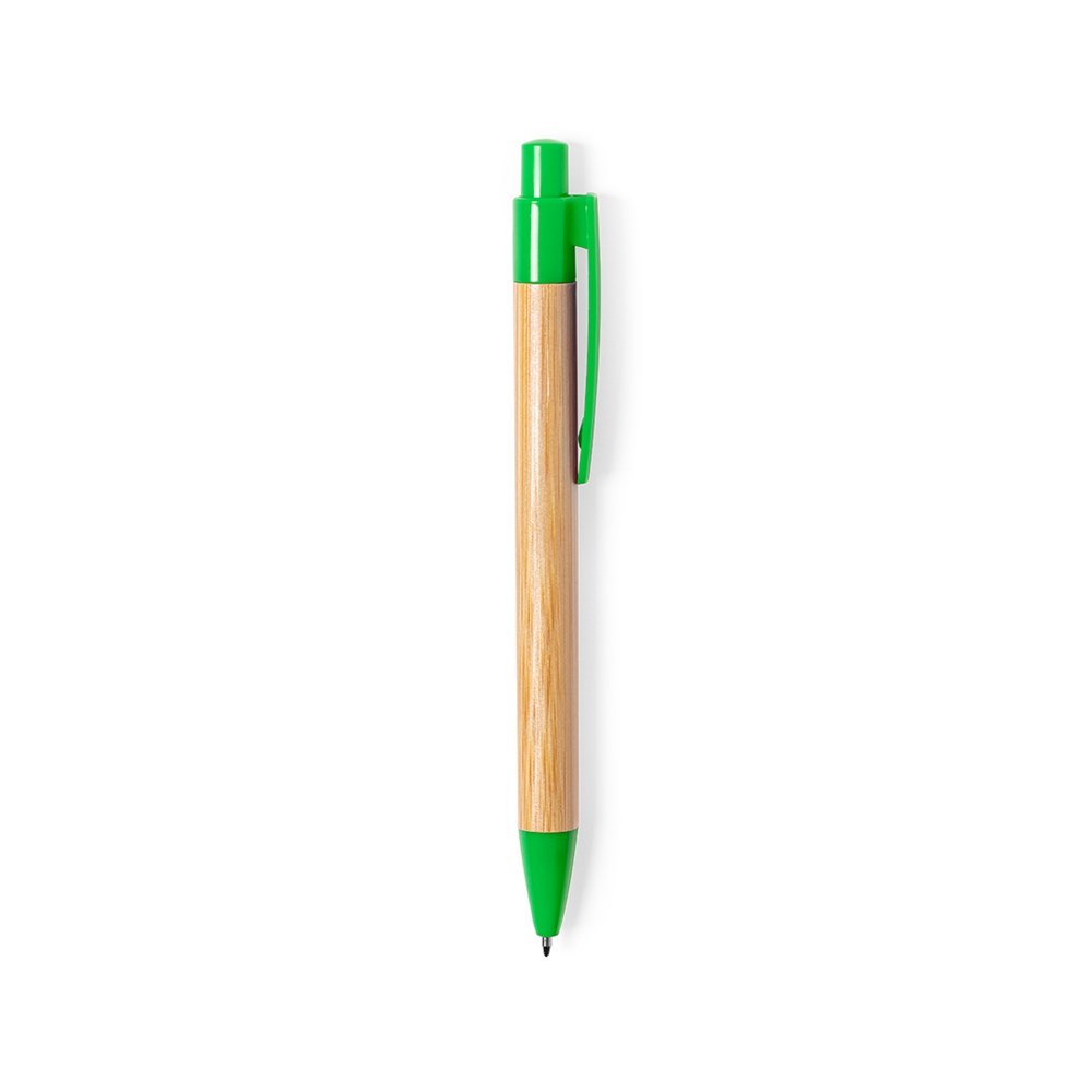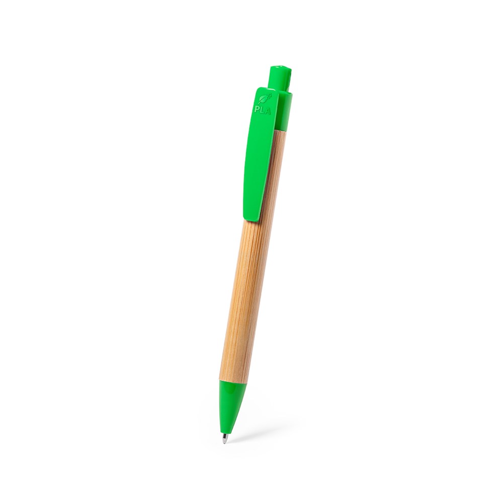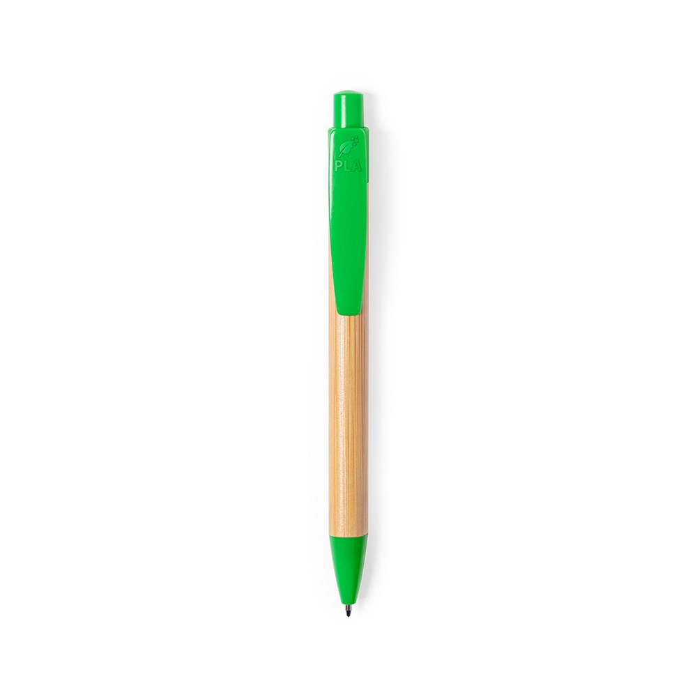 Nature Line Kugelschreiber mit Druckknopfmechanik. Kombination aus glänzendem Bambuskörper und Zubehör aus PLA -Poly Milchsäure-, die aus 100% natürlichen Ressourcen wie Maisstärke, Maniok oder Zuckerrohr gewonnen wird und am Ende ihres Lebenszyklus zu 100% kompostierbar ist. Clip mit großer Beschriftungsfläche und in vielen Farben erhältlich, mit blauer Tinte. PLA-Plakette am oberen Teil des Clips.