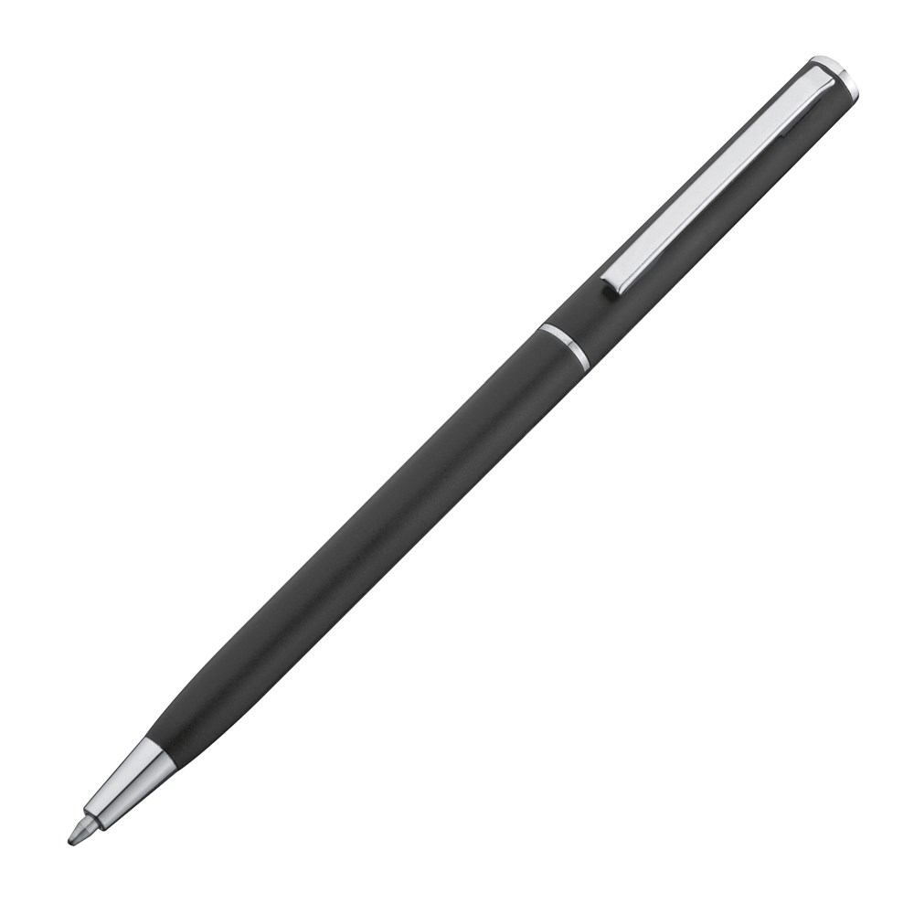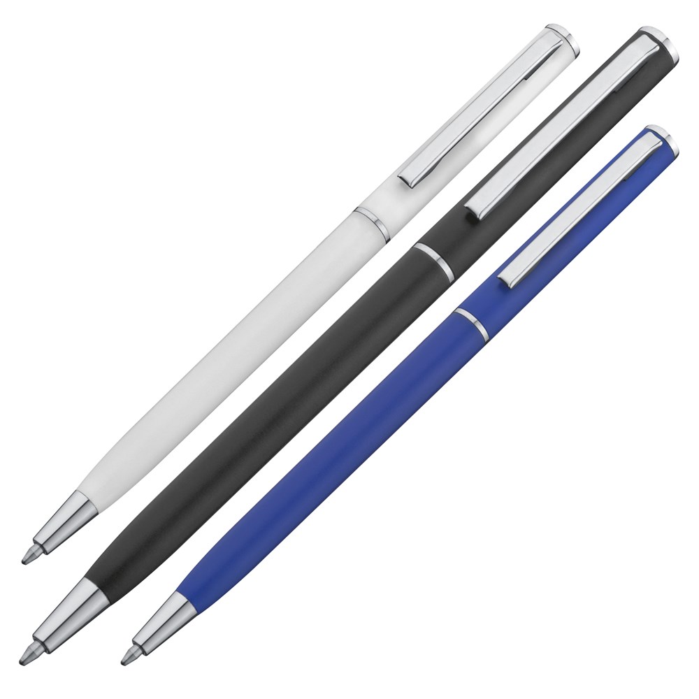 Unser Drehkugelschreiber mit blau schreibender Mine zeichnet sich durch seine schlanke Form aus und ist ideal für die Stiftelaschen in Notizbüchern geeignet. Ihre Werbung wird per Druck rechts vom Clip des Kugelschreibers angebracht, um Ihre Marke auf praktische und sichtbare Weise zu präsentieren.