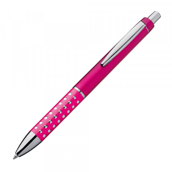 Ein Kugelschreiber mit einer glitzernden, rutschfesten Griffzone und einer blau schreibenden Großraummine ist nicht nur ein praktisches Schreibgerät, sondern auch ein auffälliger Blickfang.