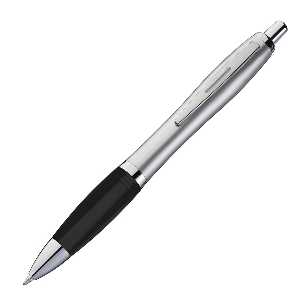 Unser Kugelschreiber mit satiniertem Gehäuse, Metallclip, Gummimanschette und blau schreibender Großraummine ist ein elegantes und komfortables Schreibgerät. Ihre Werbung wird auf den Schaft des Kugelschreibers rechts vom Clip gedruckt, um Ihre Marke stilvoll zu präsentieren.