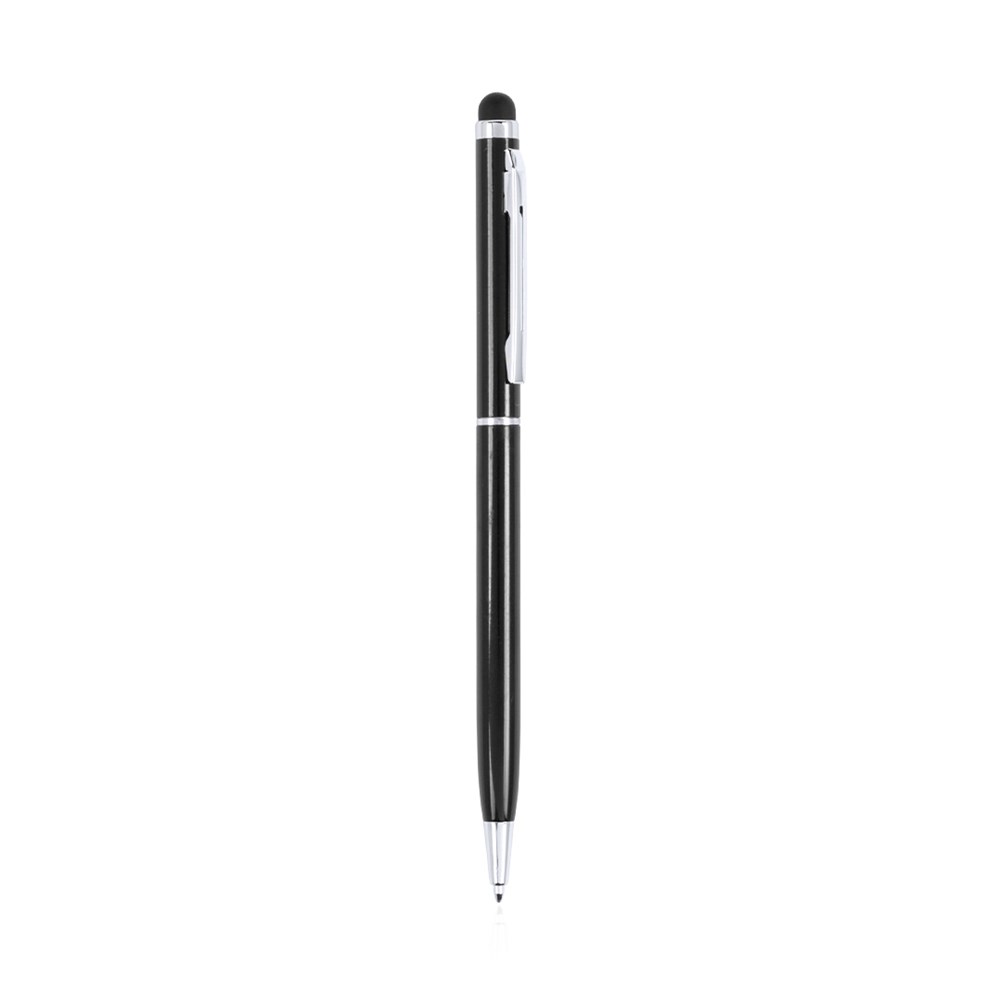 Dreh-Kugelschreiber mit integriertem Stylus und ultradünnem Gehäuse aus Aluminium mit geschmeidigem Metallic-Finish in verschiedenen Farben und farblich passendem Stylus. Kontrastdetails und Ringe in Silber. Blaue Tinte.