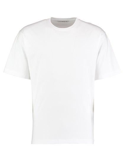 Rundhalsausschnitt mit 1x1-Rippstrick | Doppelt gekettelte Halsausschnittverarbeitung | Einfassband aus gleichem Material im Nacken | Verklebtete Schulternähte | Doppelnadel-Saum und -Bündchen | Gewebtes Etikett im Nacken