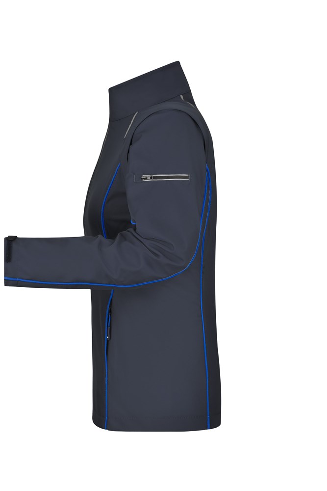 Kontrastfarbige Innenseite, kontrastfarbige Paspel an Vorder-, Rückenteil und Ärmel