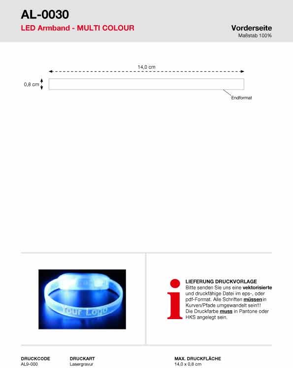 Per Druckknopf können Sie zwischen drei Leuchtvarianten wählen: Farbwechselspiel, weiß schnell oder weiß langsam blinkend. Dieses Band ist ein echtes Highlight auf Konzerten, Events. Ausgestattet mit sehr hellen LED`s. Die beiden austauschbaren Knopfzellen sind transportgesichert.