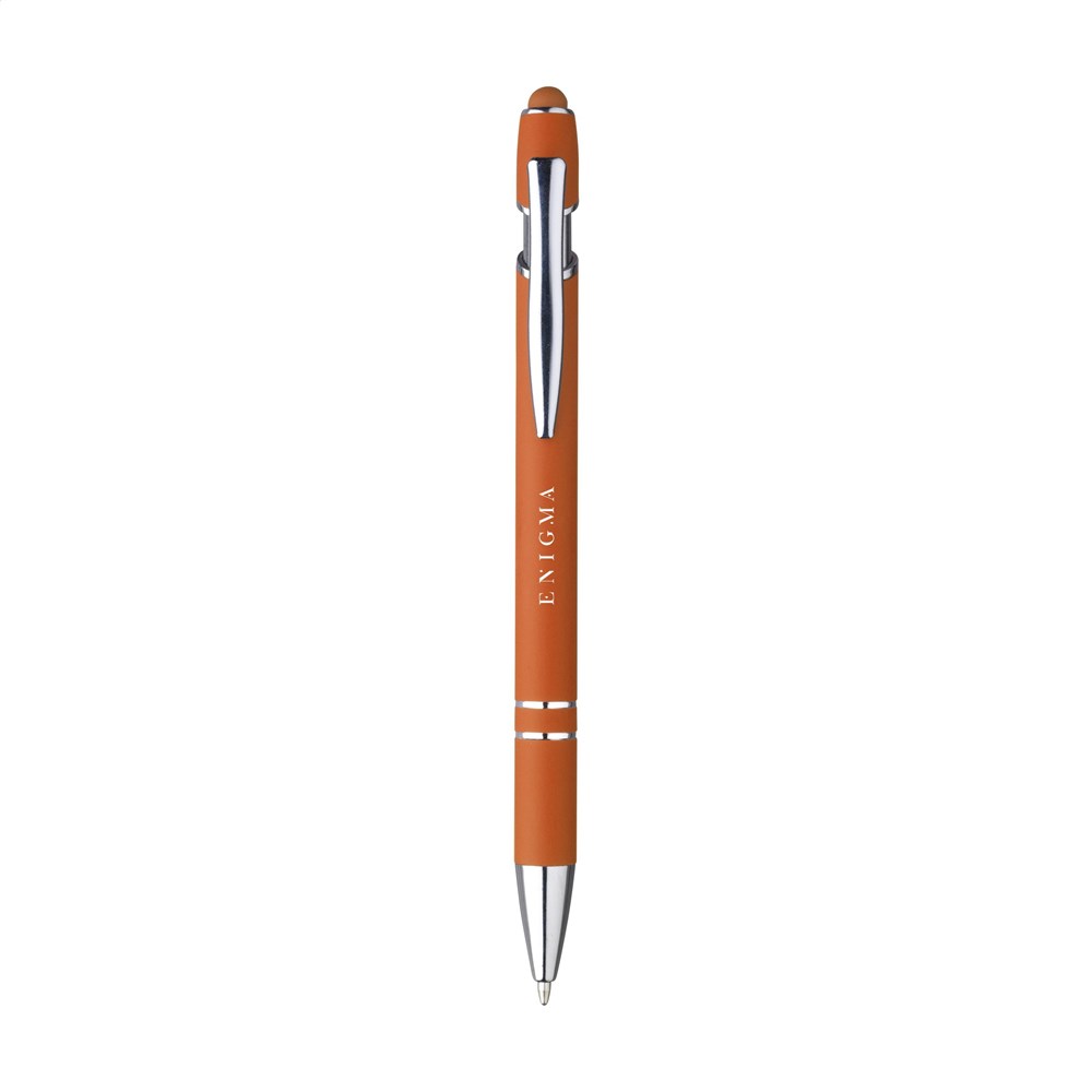 Schlanker, blauschreibender Kugelschreiber mit Aluminiumgriff. Ausgestattet mit einem gummierten Soft-Touch-Finish und einer Gummi-Spitze. Robuster Metallclip und Kunststoffspitze. ACHTUNG: Digitaldruck auf dem weißen Kugelschreiber ist nicht möglich.