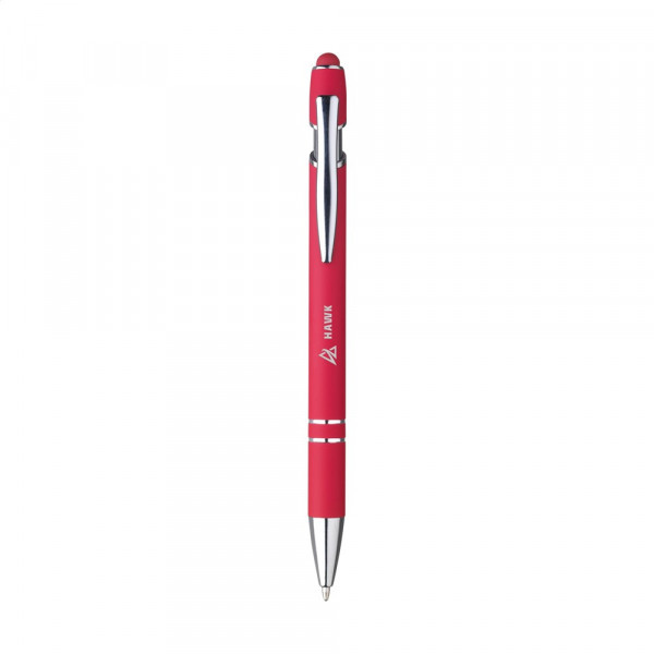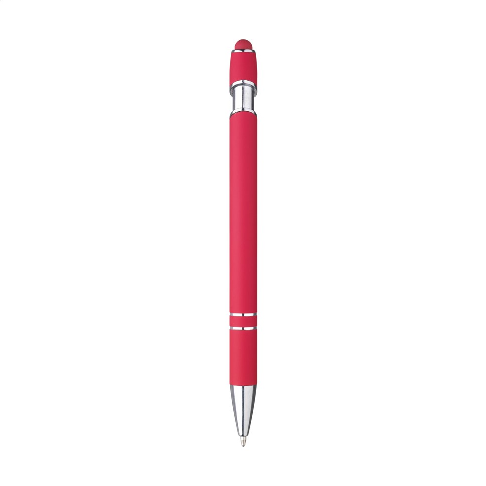 Schlanker, blauschreibender Kugelschreiber mit Aluminiumgriff. Ausgestattet mit einem gummierten Soft-Touch-Finish und einer Gummi-Spitze. Robuster Metallclip und Kunststoffspitze. ACHTUNG: Digitaldruck auf dem weißen Kugelschreiber ist nicht möglich.