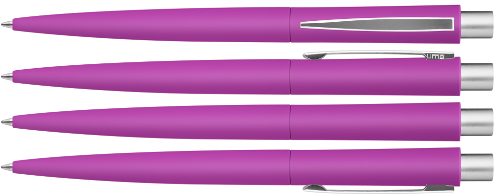 Metall-Druckkugelschreiber mit Softtouch-Gehäuse. Metallclip und Drücker matt verchromt.