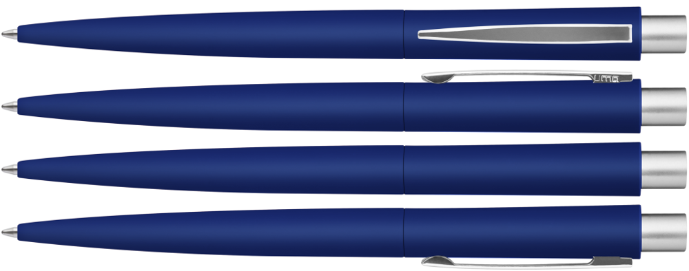Metall-Druckkugelschreiber mit Softtouch-Gehäuse. Metallclip und Drücker matt verchromt.