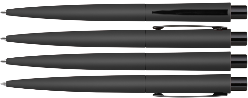 Metall-Druckkugelschreiber mit Softtouch-Gehäuse. Metallclip und Drücker schwarz glänzend. mehr