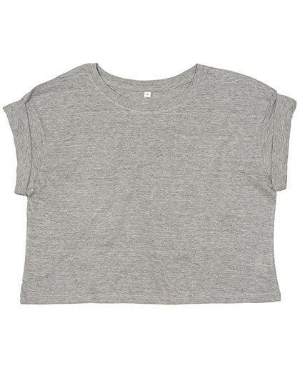 Lockeres, bauchfreies Rundhals T-Shirt | Bio-Baumwolle, ringgesponnen und gekämmt | Fallende Schulterpartie mit aufgerollten Ärmeln | Saum mit Zwillingsnadel | 1x1 Ripp-Kragen | Abreißbares Größenetikett