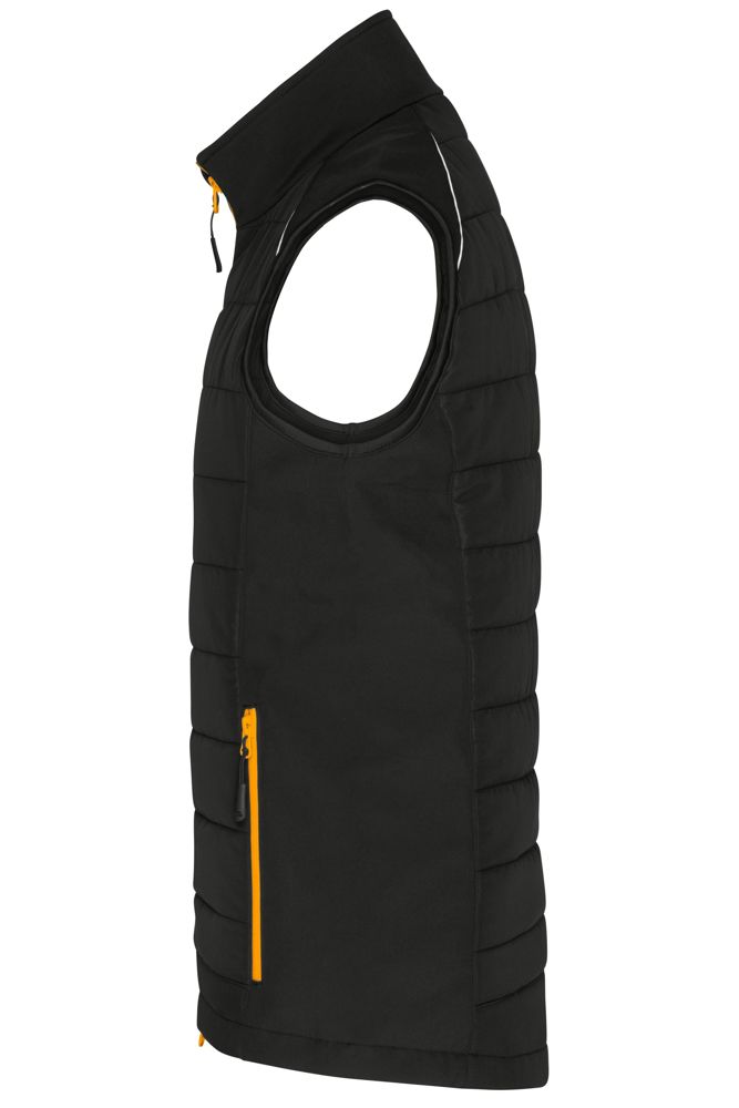Pflegeleichtes 2-Lagen Softshellmaterial kombiniert mit gesteppten Einsätzen im Vorder- und Rückenteil