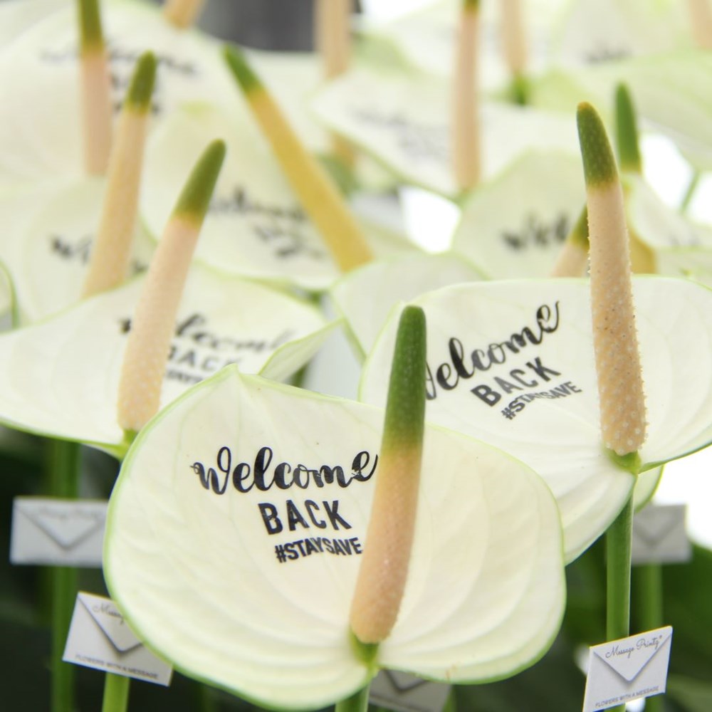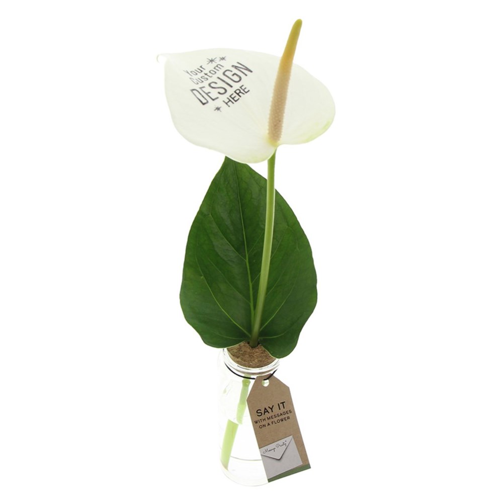 Lassen Sie Ihre Botschaft erstrahlen – mit der luxuriösen Message Printz® Schnittanthurie, einer lebenden Blume, die für Liebe, Glück und Wohlstand steht. Diese elegante Schnittblume, auch Flamingoblume genannt, bleibt dank ihrer langen Haltbarkeit wochenlang schön und hinterlässt einen bleibenden Eindruck. Personalisieren Sie die Blüte mit Ihrem Logo, Slogan oder Ihrer Botschaft – ganz ohne Einfluss auf die Lebensdauer. Abgerundet wird das Konzept durch ein passendes Anthurienblatt in einem trendigen Glasgefäß. Heben Sie sich ab mit einem einzigartigen, persönlichen Geschenk, das bei jedem Anlass ins Auge fällt.