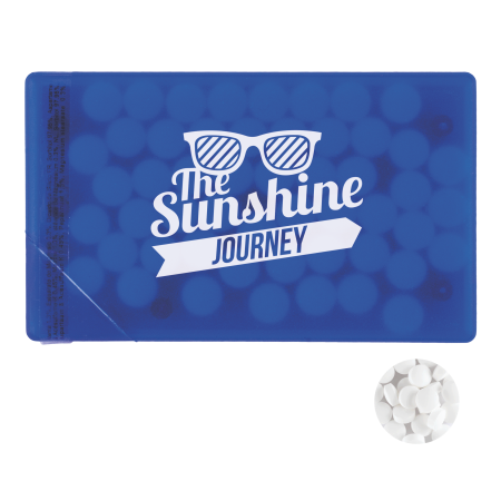 Mintdispenser Kreditkarte 78x48 mm mit ca. 8 gr. Minties zuckerfrei und Zutatenaufkleber