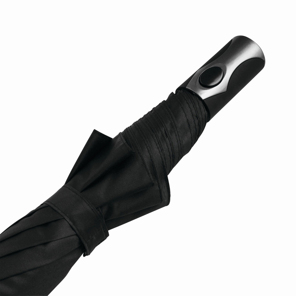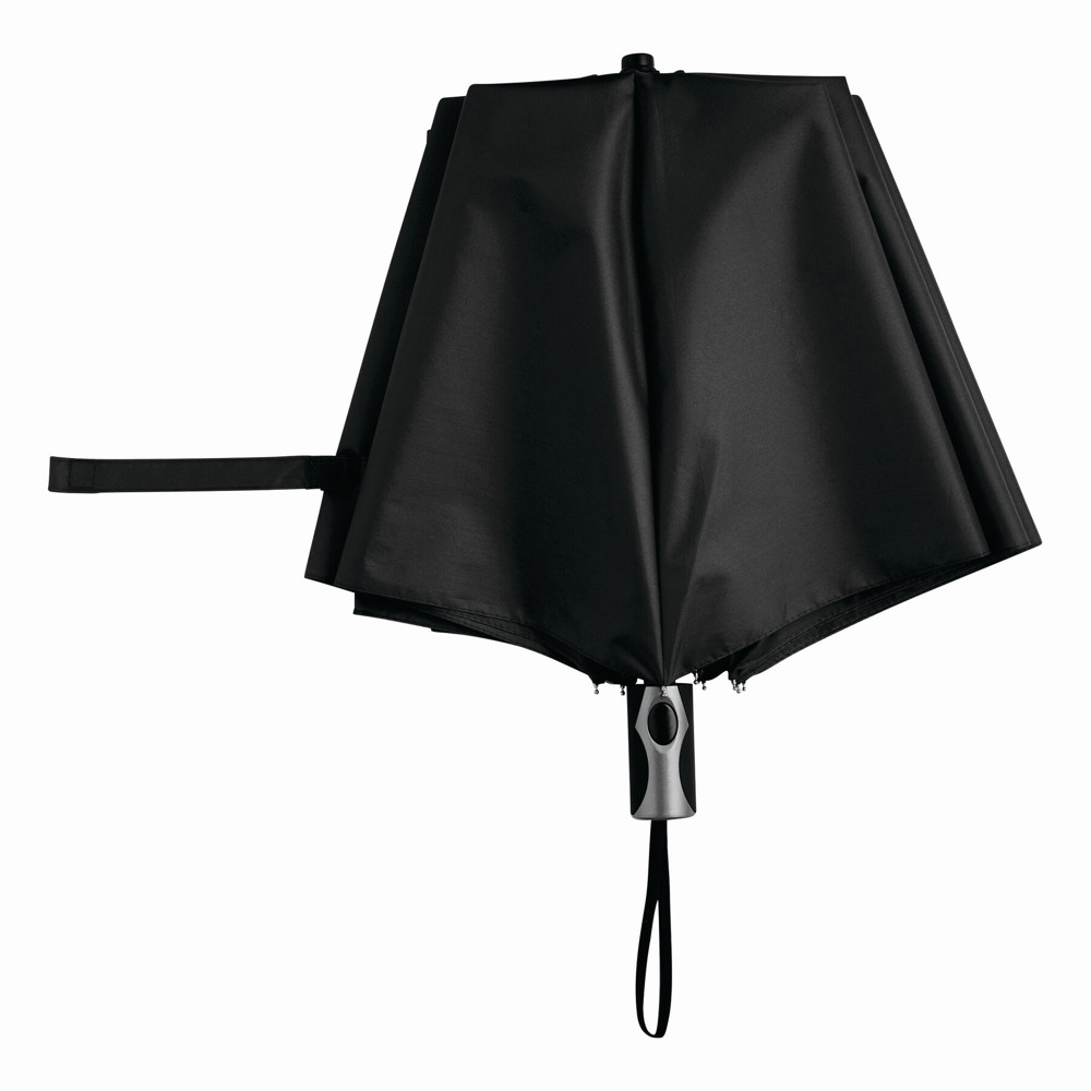Automatik-Windproof-Herrenfaltschirm MISTER: 2-teiliger Metallstock, Metallspeichen und -tips, Kunststoffgriff mit Handschlaufe, Polyester-Pongee-Bespannung, Schließband mit Klettverschluss