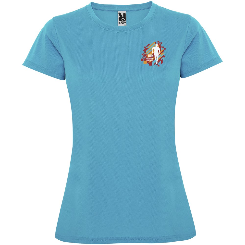 Kurzärmeliges Funktions-T-Shirt mit Raglanärmeln. Rundhalsausschnitt mit verdeckten Nähten. Figurbetontes T-shirt. Atmungsaktiver Stoff, leicht zu waschen und zu trocknen. Herausnehmbares Etikett. Technisches Gewebe. Ultravioletter Schutzfaktor. Das Modell ist 174 cm groß und trägt Größe S.