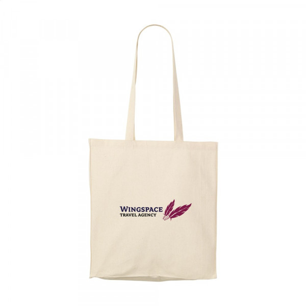 Robuste Einkaufstasche mit langen Griffen. Aus 100 % gewebter Baumwolle (165 g/m²). Fassungsvermögen ca. 12 Liter.