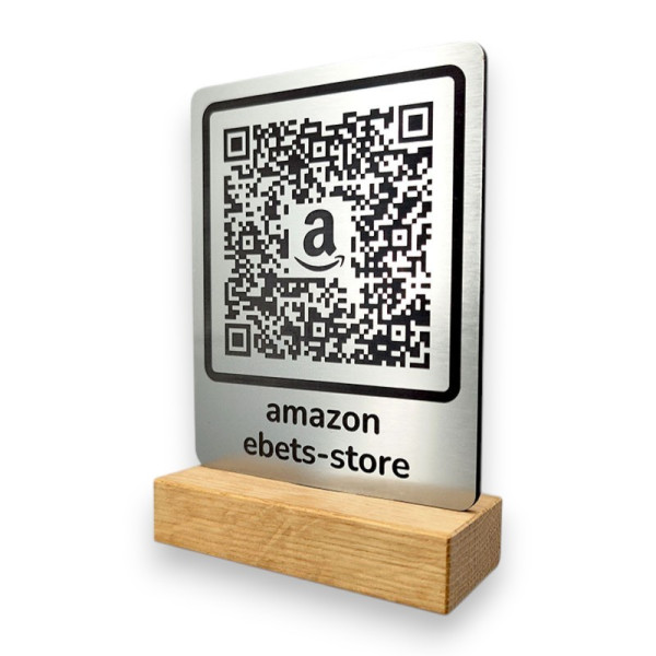 NFC Aufsteller mit beidseitigem QR-Code und integriertem NFC Chip für vielseitige Anwendungen.