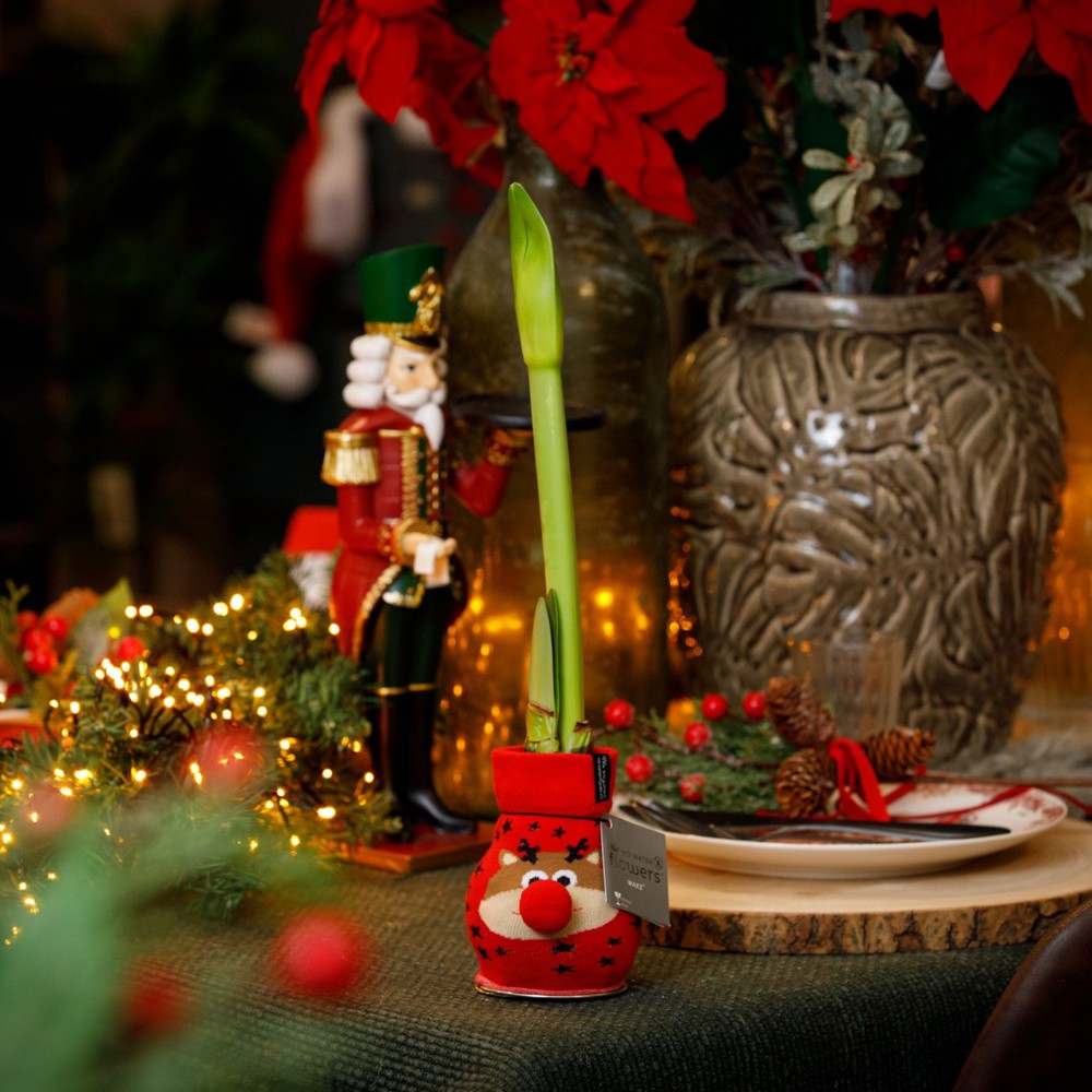 Die No Water Flowers® Fashionz Xmas Fun ist ein fröhliches und originelles Weihnachtsgeschenk, perfekt für alle, die die Feiertage mit einem Augenzwinkern genießen. Die lebenden No Water Flowers® sind bekannt für ihre einzigartigen, handgefertigten Amaryllis-Wachszwiebeln. Diese speziell ausgewählten und getesteten Zwiebeln verfügen über genügend Energie, um ganz ohne Wasser zu wachsen und zu blühen. Echte No Water Flowers® entwickeln relativ kurze Blütenstiele, kippen nicht um und blühen garantiert. Jede No Water Flowers®-Zwiebel wird sorgfältig gereinigt und perfekt mit Wachs überzogen, das verleiht ihr ein modernes und stilvolles Aussehen.