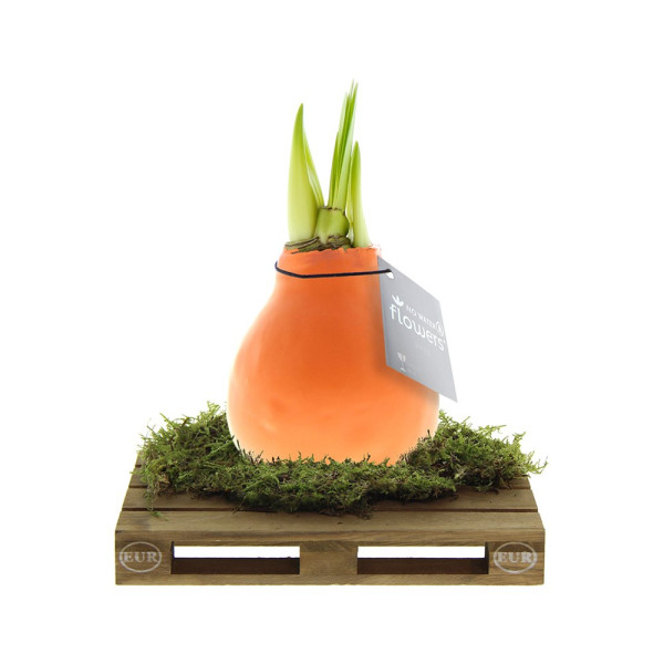 No Water Flowers® sind ein luxuriöses, wachsendes und blühendes Geschenk. Die lebenden No Water Flowers® sind bekannt für ihre einzigartigen handgefertigten Wachs-Amaryllis-Zwiebeln. Diese speziell ausgewählten und getesteten Amaryllis-Zwiebeln haben genug Energie, um ohne Wasser zu wachsen und zu blühen. Authentische No Water Flowers® haben relativ kurze Blütenstiele, fallen nicht um und blühen garantiert. Jede No Water Flowers® wird sorgfältig gereinigt und perfekt gewachst. Dadurch erhält die Blumenzwiebel ein zeitgemäßes und modisches Aussehen. Diese No Water Flowers® ist auf einer coolen Mini-Palette platziert, was ihr ein robustes und fantastisches Erscheinungsbild verleiht. Super cool für Bereiche wie die Logistikbranche. Außerdem sorgt dies dafür, dass die Amarylliszwiebel besonders stabil steht.