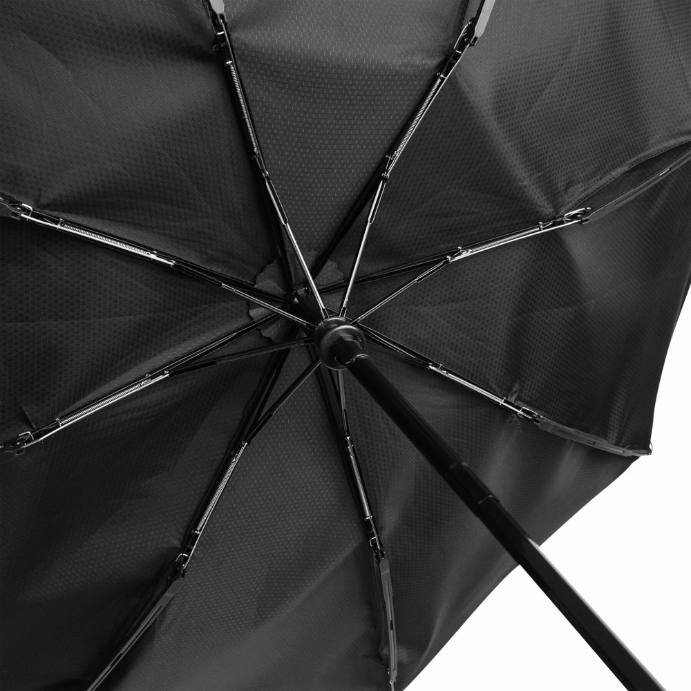 Vollautomatischer Windproof-Taschenschirm ORIANA, in farblich abgestimmter Hülle: 3-teiliger Metallstock, mit Metall-/Kunststoff-/Fiberglasspeichen, Metalltips, gummierter und farblich abgestimmter Griff mit Handschlaufe, Polyester-Bespannung und -Hülle mit Wabenstruktur, Druckknopfverschluss