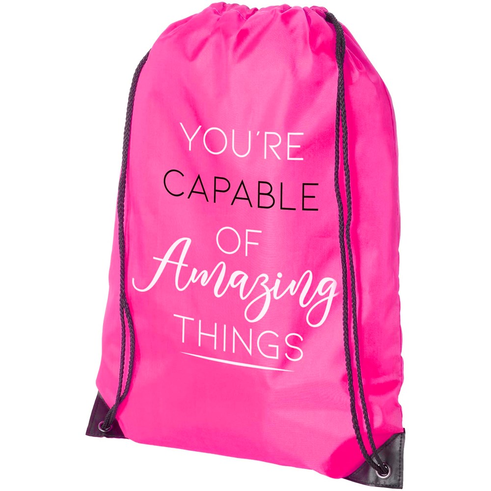 Der Oriole Sportbeutel ist ein ideales Giveaway, um Ihre Marke oder Marketingkampagne zu bewerben. Dieser leichte Rucksack ist budgetfreundlich, lässt sich leicht auf dem Rücken oder über der Schulter tragen und bietet genügend Fläche für ein Logo oder andere Botschaften. Dank des Kordelzugs lässt er sich leicht öffnen und schließen, und das 210D-Polyestermaterial ist robust und langlebig.