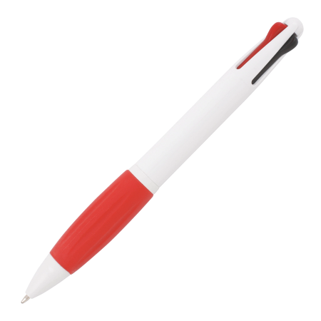 Der PAXI 4-Farben-Kugelschreiber Peekay ist ein praktischer Kunststoffstift mit Metallclip, der in Schwarz, Rot, Blau und Grün schreibt.