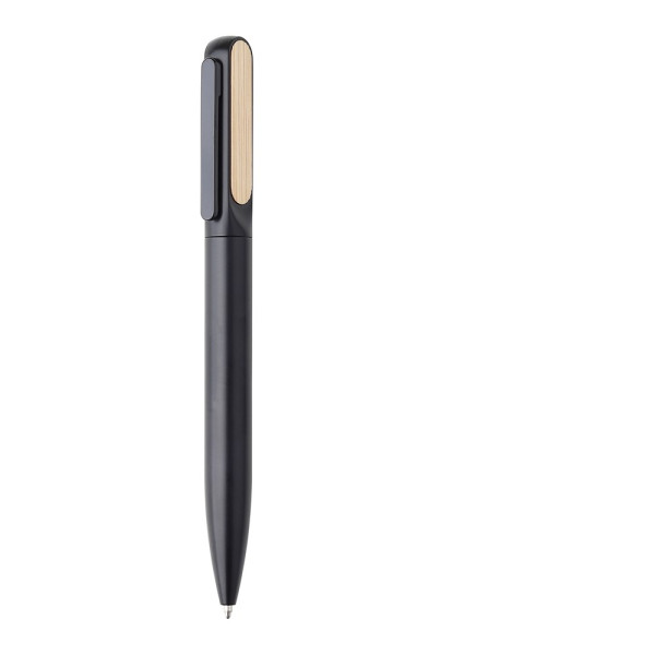 Farben im Industrial-Style -wie mattes Schwarz, Grau, Weiß und Silber- sowie farblich darauf abgestimmte Metallclips, harmonieren perfekt mit dem hellen naturbelassenen Bambusdekor. Das Zusammenspiel von Material, Design und Schreibkomfort machen diesen Drehkugelschreiber zu einem unverwechselbaren und stilvollen Werbegeschenk.