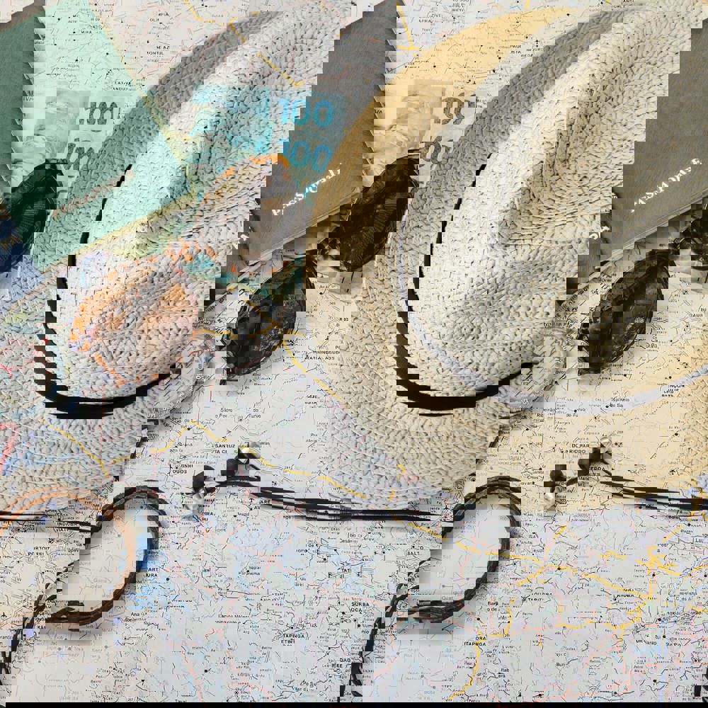 Pflanzlicher Strohhut mit farbigem Band