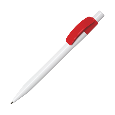 Maxema-Kugelschreiber PIXEL PX40 B mit glänzend weißem Gehäuse und Drücker, glänzend farbigem Clip. Ausgestattet mit einer X-20 Mine mit blauer Dokumental-Tinte für bis zu 2.000 Meter Schreibvergnügen. Lieferbar in 9 Farben und ab 2.000 Stück farblich kombinierbar.