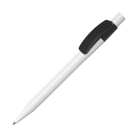 Maxema-Kugelschreiber PIXEL PX40 B mit glänzend weißem Gehäuse und Drücker, glänzend farbigem Clip. Ausgestattet mit einer X-20 Mine mit blauer Dokumental-Tinte für bis zu 2.000 Meter Schreibvergnügen. Lieferbar in 9 Farben und ab 2.000 Stück farblich kombinierbar.