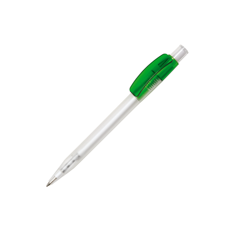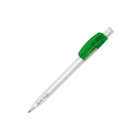 Maxema Kugelschreiber PIXEL PX40 FROST NEUTRAL mit gefrostetem transparentem Gehäuse, glänzend farbigem transparentem Clip und glänzend transparentem Drücker. Ausgestattet mit einer X-20 Mine mit blauer Dokumental Tinte für bis zu 2.000 Meter Schreibvergnügen. Erhältlich in nicht weniger als 9 Farben und ab 2.000 Stück farblich kombinierbar.
