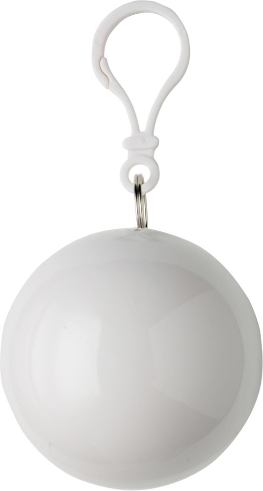 Poncho transparent, verpackt in ABS-Kunststoff-Kugel mit Kunststoff-Karabinerhaken.