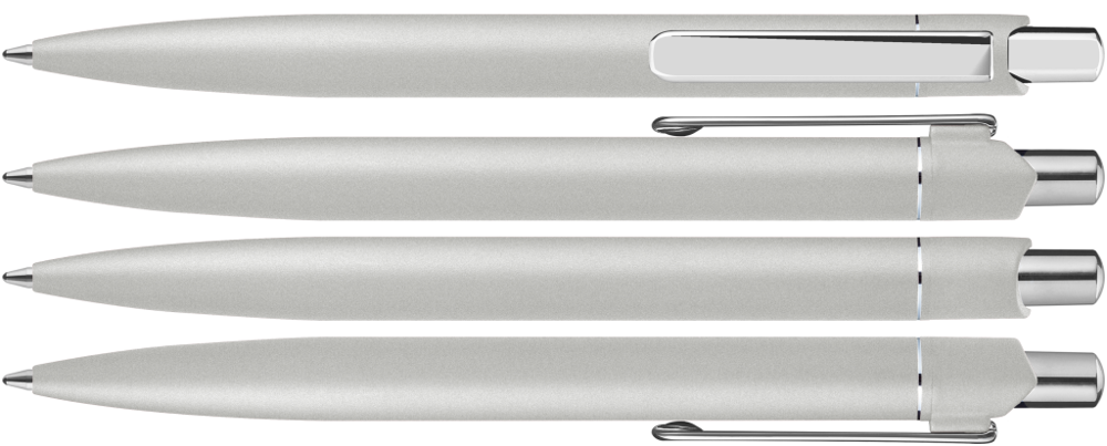 Metall-Druckkugelschreiber mit matt lackiertem Aluminiumschaft. Metallclip und Drücker silber glanzverchromt.