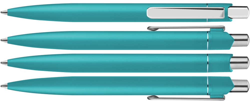 Metall-Druckkugelschreiber mit matt lackiertem Aluminiumschaft. Metallclip und Drücker silber glanzverchromt.