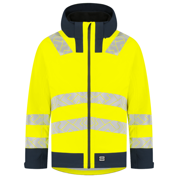 Der Regenjacke Techshell High Vis Redefined von Tricorp ist für jedes Wetter gerüstet. Dieser leistungsstarke Regenmantel besteht aus 100 % recyceltem Polyester mit hochelastischem Oxford-Gewebe, TPU-Membran und Trikot-Schutzschicht. Wind, Regen oder schlechte Sicht? Kein Problem! Dank der Normen EN 343 4-4 und ISO 20471 Klasse 3 sind Sie vollständig geschützt und sichtbar.