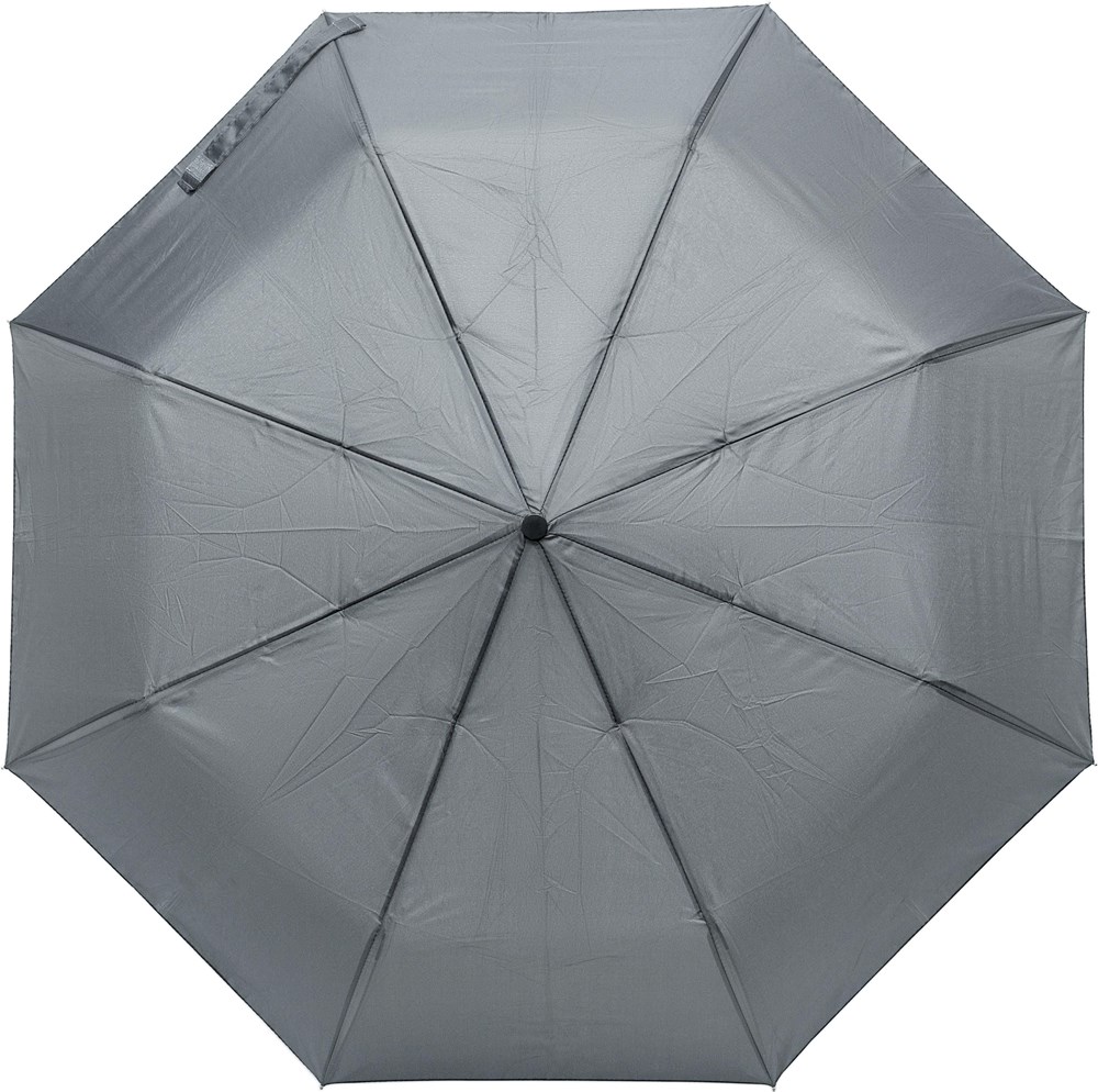 Faltbarer Automatik-Taschenschirm mit einer Bespannung aus Pongee (180T). Der Schaft und das Gestell sind aus Metall und der Handgriff ist aus Kunststoff.