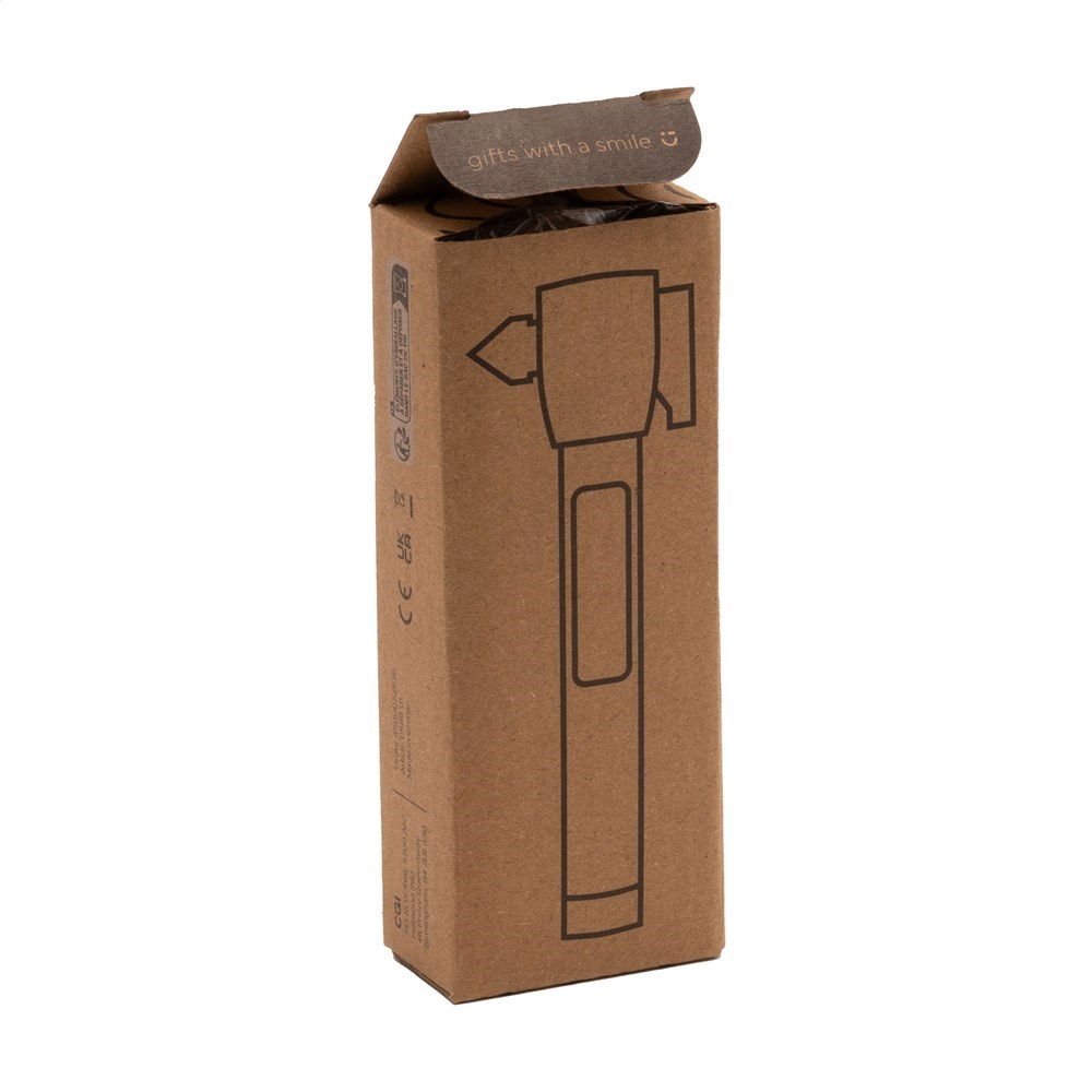 4-in-1 Aluminium-Autowerkzeug mit Sicherheitshammer, Gurtschneider, Magnet und Taschenlampe mit COB-Licht. Ein Notwerkzeug, das in jedem Auto in Reichweite sein muss. Inklusive abnehmbarer Schlaufe und Batterien. Verpackt pro Stück.