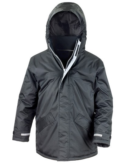 Saum mit verstellbarem Kordelzug (gemäß EN14682) | Versteckte, verstellbare 3-teilige Kapuze im Kragen | Wasserdicht bis 2.000 mm und winddicht, schnell trocknend | Zwei verdeckte Seitentaschen mit Windschutzleisten und kuschelig, weichem Innenfutter | Komplett versiegelte, wasserdichte Nähte | Stabiler, 7mm Reißverschluss vorne | Mit Fleece gefütterte Taschen sorgen für warme Hände | Elastische Ärmelbündchen mit Reflektorelementen | Reflektorelemente im unteren Rückenbereich | Außen: 100% Storm-Dri Polyester Pongé mit PU-Beschichtung / Futter: 160 g/m² Polyester Wattierung | Graues Innenfutter | Lange Passform | Veredelungszugang: innerer Saum auf der Rückseite und Brustbereich links