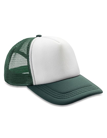 Wattiertes Polyester | 5-Panel, vier aus Meshmaterial und eine aus festem Stoff | Weißes Stirnteil mit Netz und Schirm in Kontrastfarbe | Snapback-Größenverstellung | Halbgewölbter Stoff-Schirm | Abreißetikett