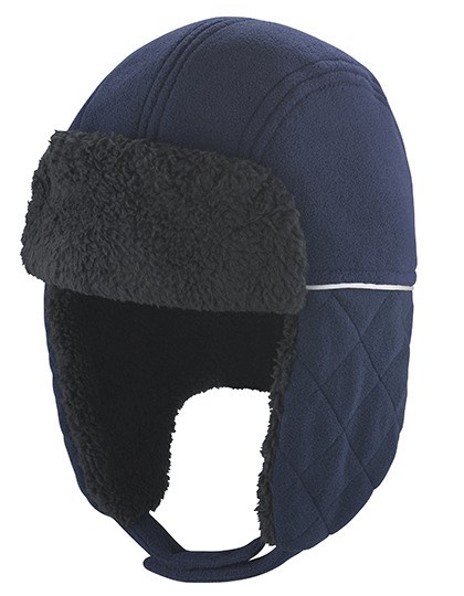 Außen: 100 % Polyester, Innen: 100 % Polyester-Fleece | Windproof | Vier Segmente | Reflektierende Details | Verstellbarer Druckknopfverschluss | Gesteppte Ohrschützer