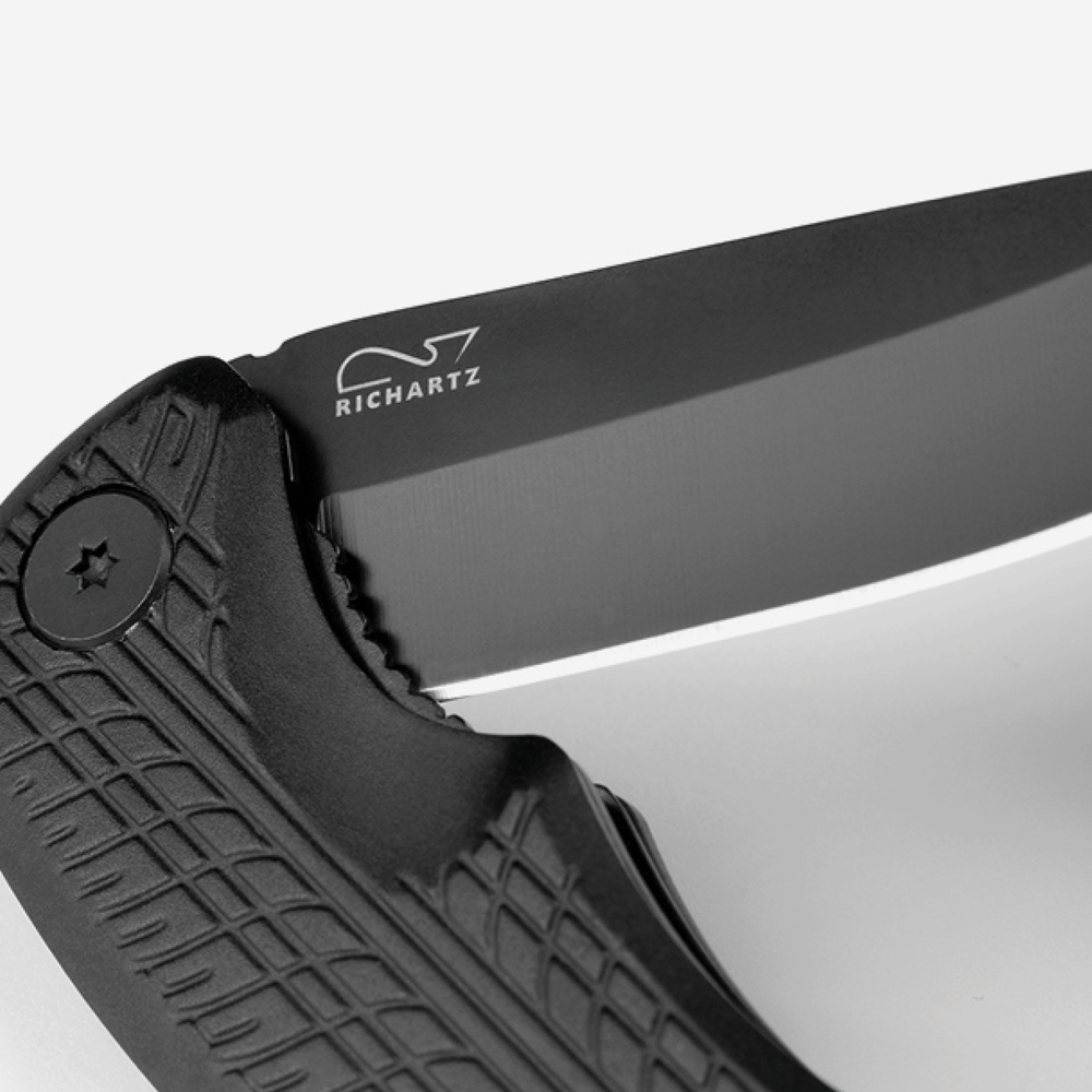Das schwarz beschichtete RICHARTZ Rescue-Tool mit kräftiger, rostfreier Klinge und Safety-Lock Klingenverriegelung gibt Sicherheit im täglichen Gebrauch. Der Gurtschneider mit doppelter Klingenführung garantiert den schnellen Schnitt. Der speziell gehärtete Werkzeugstahl des Glasbrechers ermöglicht das präzise Zerschlagen der Glasscheibe. Die geprägte Reifenstruktur auf dem Griff, in Kombination mit der schwarz beschichteten Klinge, steht für Aktualität und Sportlichkeit.