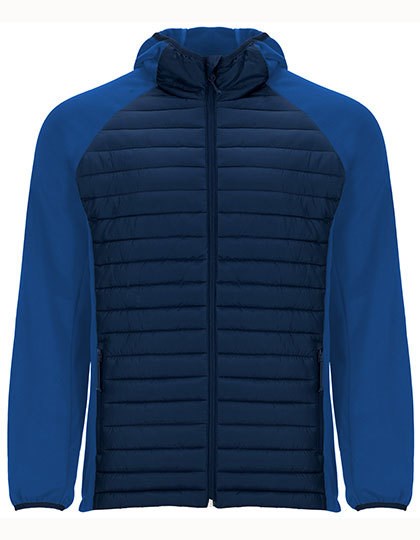 Front- und Rückenteil: 100% Polyester, Futter: 100% Polyester, Ärmel: 100% Polyester Interlock, 290 g/m² | Feste Kapuze | Raglan-Ärmel | Softshell Gewebe an Ärmeln, Seiten und Kapuze | Gesteppter, federleichter Stoff auf Vorder- und Rückseite | Durchgehender Reißverschluss Ton-in-Ton mit Kinnschutz und Puller | Zwei Taschen vorne mit Reißverschluss | Elastische Borte Ton-in-Ton an Kragen, Ärmel- und Abschlussbund | Herausreißbares Label | Windabweisend