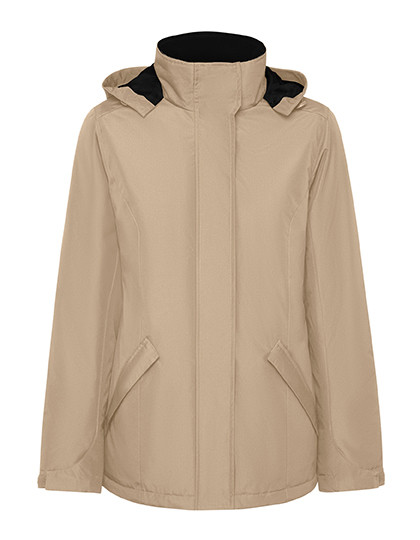 Recycelter Polyester | Wasserdichter und gefütterter Parka | Schmal geschnitten | Hoher Kragen mit faltbarer Kapuze und Klettverschluss | Dazu passender zentraler Reißverschluss mit Patte | Seitentaschen mit Reißverschluss und fester Patte | Innentasche mit Klettverschluss | Verstellbare Manschetten mit Klettverschluss | Veredelungszugang auf dem Rücken und der linken Brust