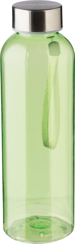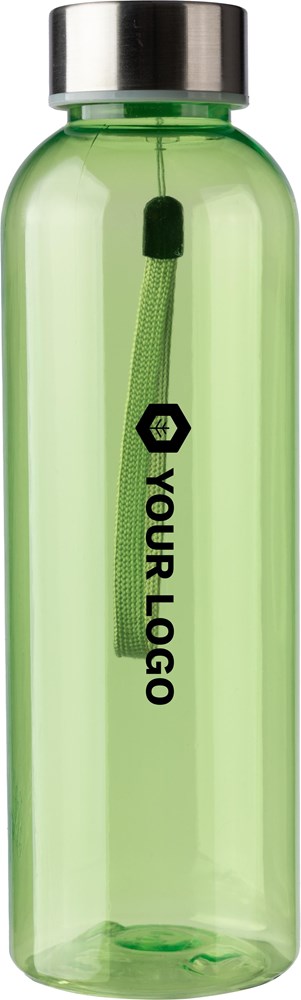rPET-Trinkflasche (500 ml) mit Edelstahldeckel und Trageschlaufe.