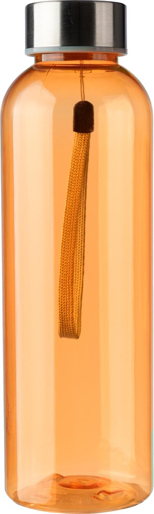 rPET-Trinkflasche (500 ml) mit Edelstahldeckel und Trageschlaufe.