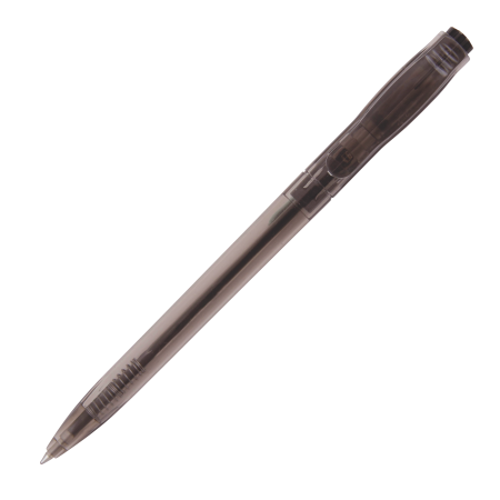 Der SAL Kunststoff-Kugelschreiber Peekay hat einen transparenten Schaft und einen schwarzen Drücker. Dieser Stift ist blauschreibend und in verschiedenen Farben lieferbar.