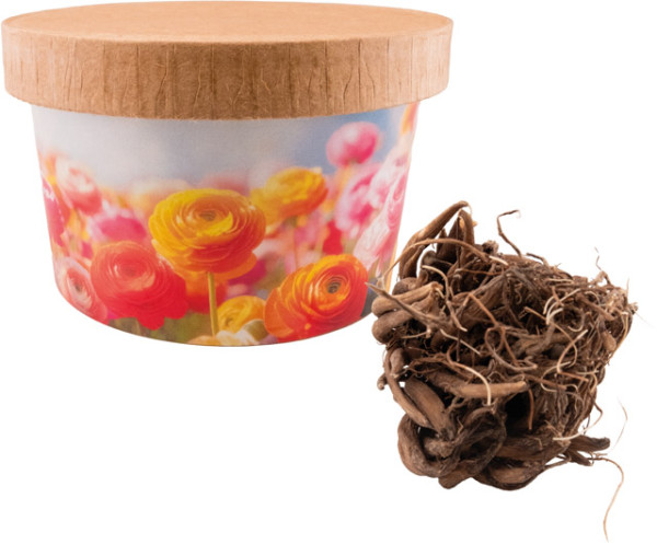 Inhalt: Erdtablette, Samen: 2 Ranunkeln-Zwiebeln