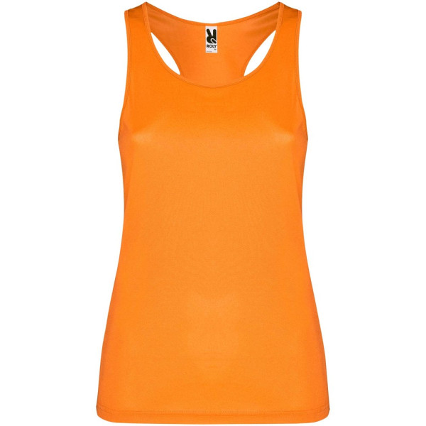 Funktionsstoff, atmungsaktiv, leicht zu waschen und zu trocknen. Gerippter Arm- und Halsausschnitt. Racerback und Seitennähte. Abnehmbares Etikett.