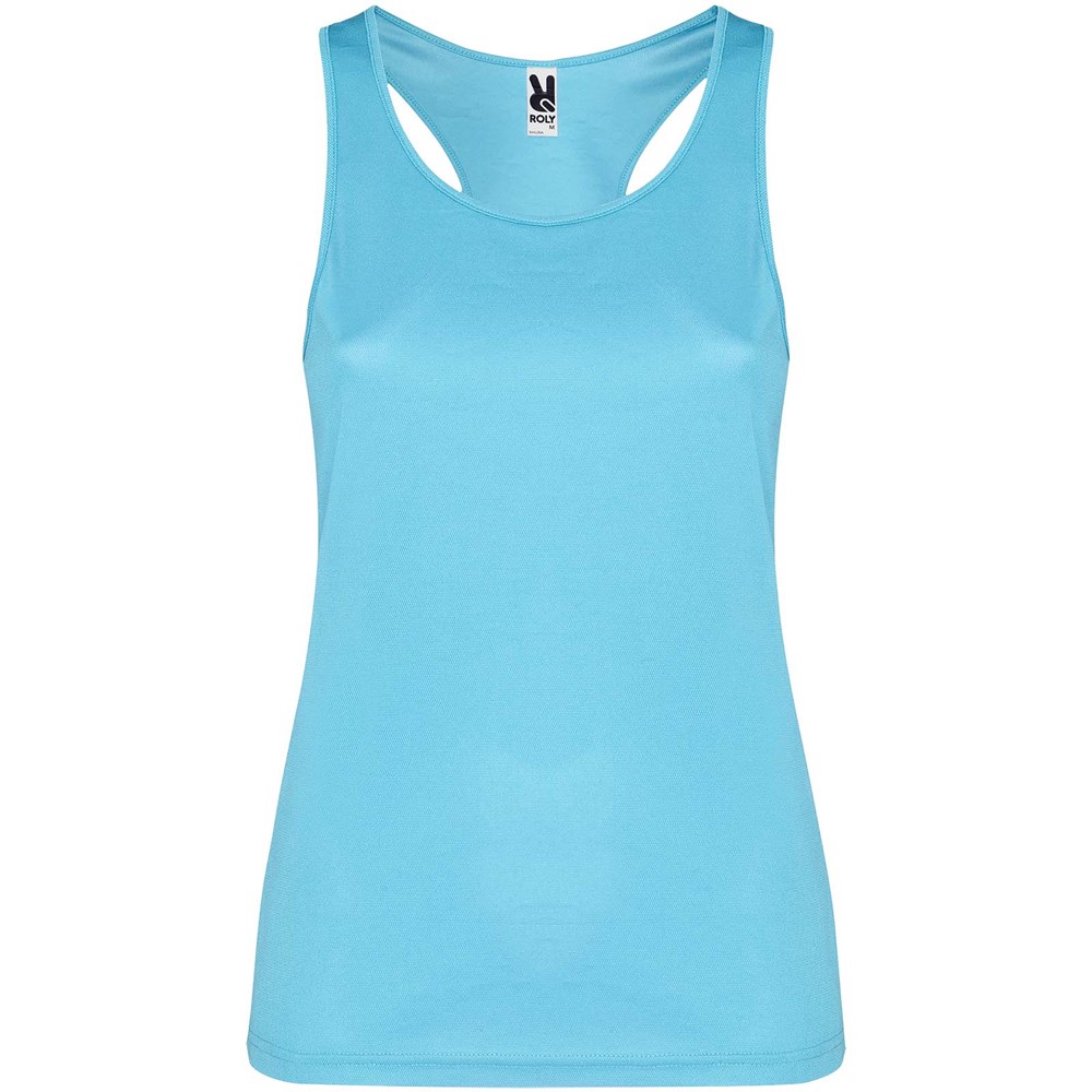 Funktionsstoff, atmungsaktiv, leicht zu waschen und zu trocknen. Gerippter Arm- und Halsausschnitt. Racerback und Seitennähte. Abnehmbares Etikett.